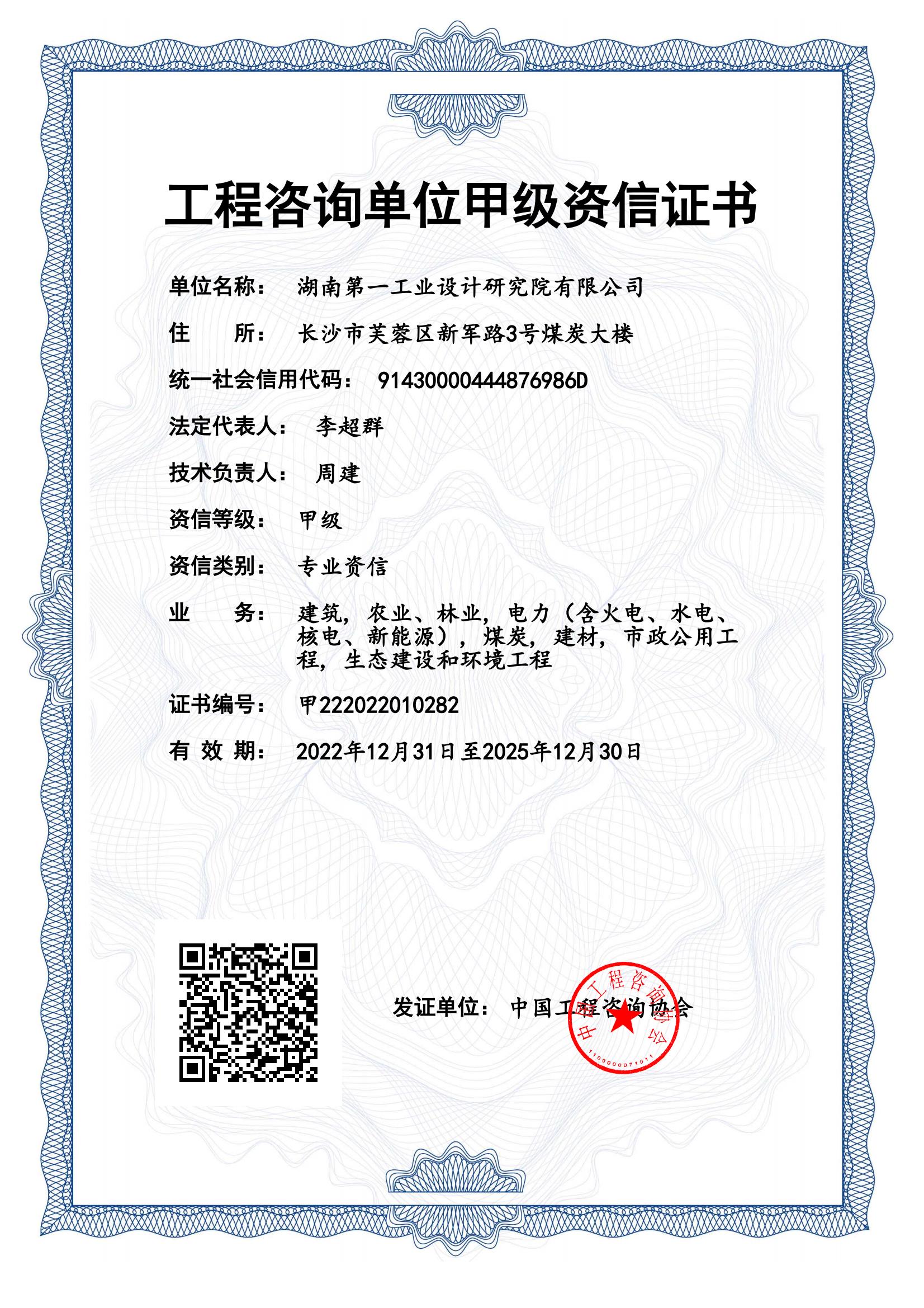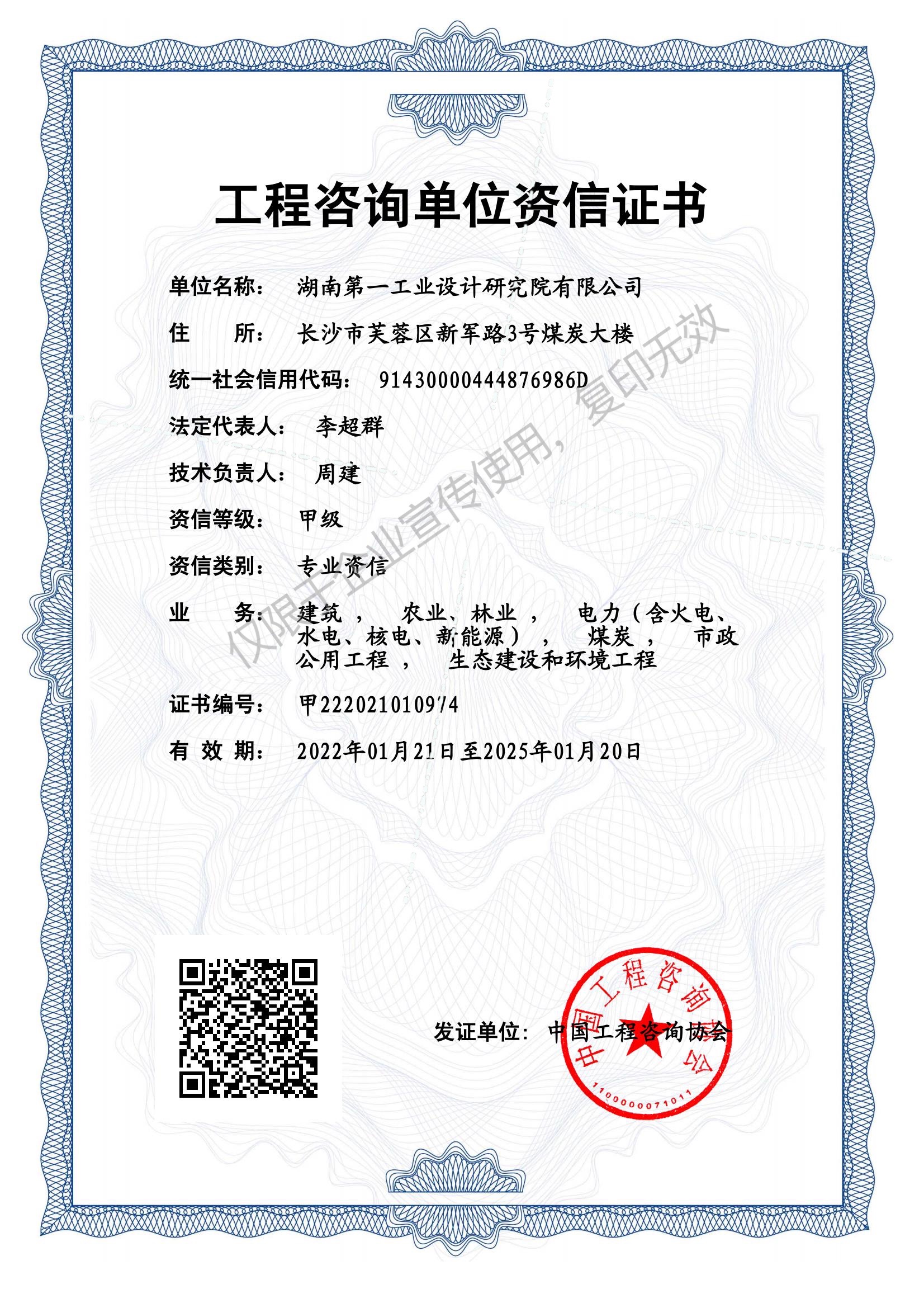 工程設(shè)計(jì)乙級(jí)資質(zhì)證書