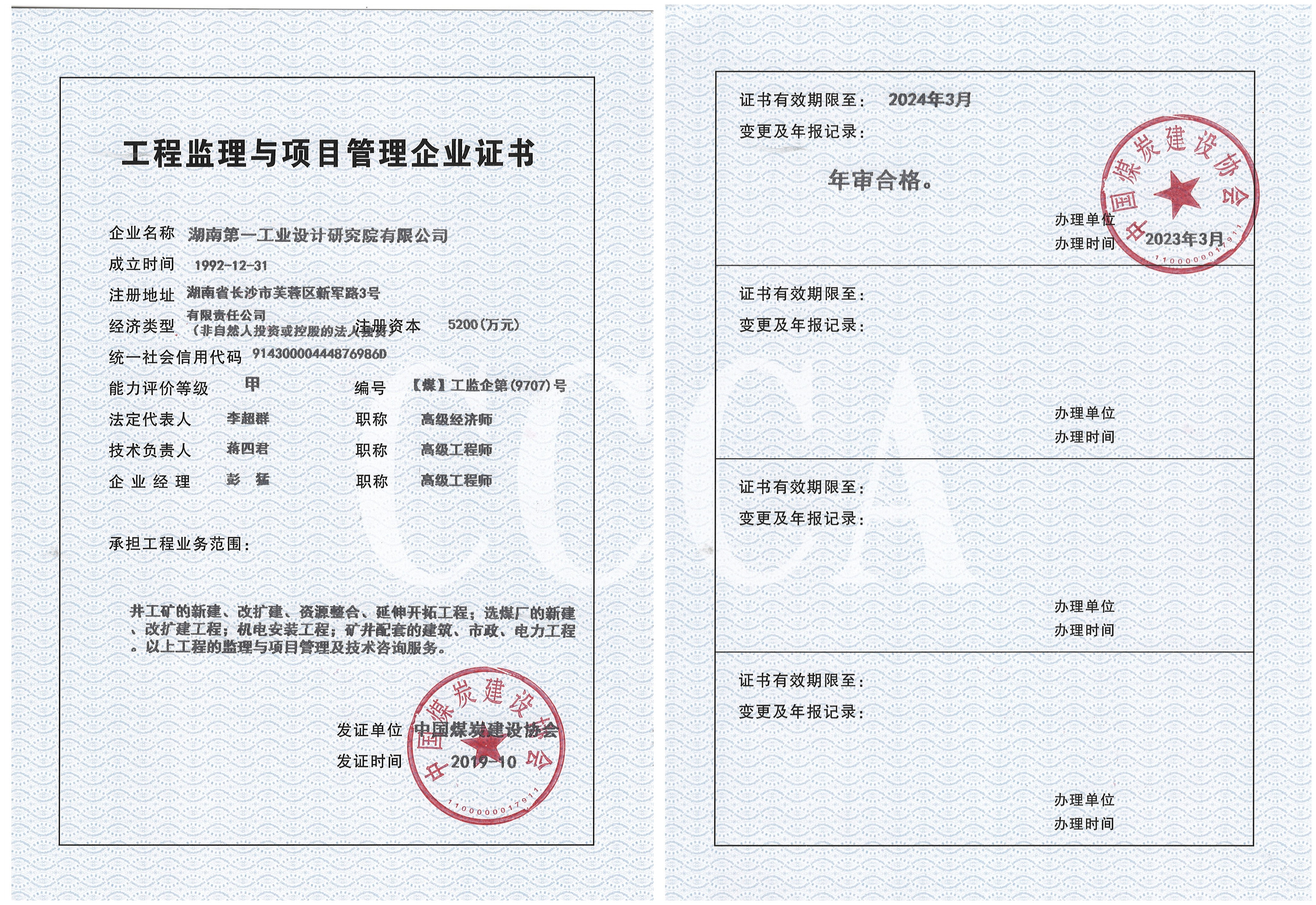 工程監(jiān)理與項(xiàng)目管理企業(yè)證書
